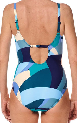 Mastectomy Swimsuit 'Lisbon One Piece' in a jade multi-pattern by Amoena